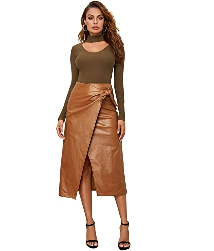 Spódnica midi z wysokiej talii ze skóry PU od SweatyRocks