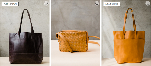 • Etyczne na każdym kroku: ABLE koncentruje się na rozwiązywaniu problemów etycznej produkcji i odpadów w modzie. Skóra, a także odpady i resztki, tworzą podstawę do toreb, portfeli i rolek na biżuterię.