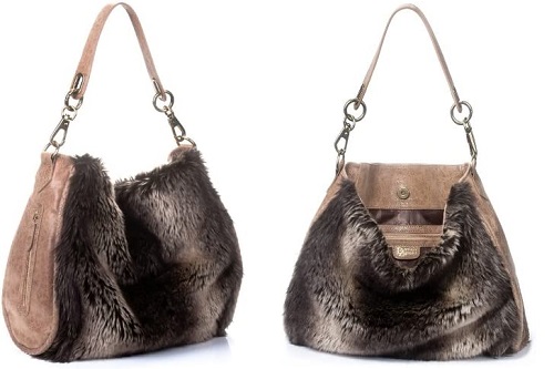 Soft Brown Leather/Faux Fur Hobo Bag