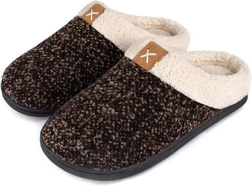 Ten model dostępny jest w sekcji kapci Vionic. Posiada mocno wyściełaną wkładkę i ortopedyczne podbicie stopy. Wkładka wspiera stopę i pomaga zdecydować, czy kapcie można nosić także na zewnątrz. Dodatkowo są uniseks i wyposażone w rzepy, co pozwala na regulację dopasowania. Klienci wspominają, że dzięki nim mogą swobodnie chodzić po domu bez bólu stóp.