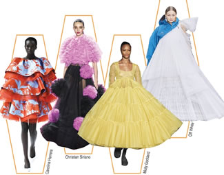 Objętość pozwala sprawić, że niektóre części ubrania wydają się większe niż w rzeczywistości. Dzięki temu można ukryć pewne partie ciała lub przeciwnie — skupić uwagę na konkretnym obszarze.